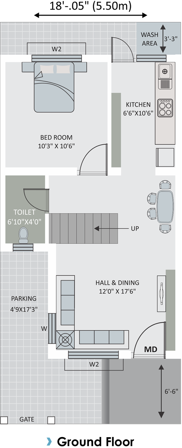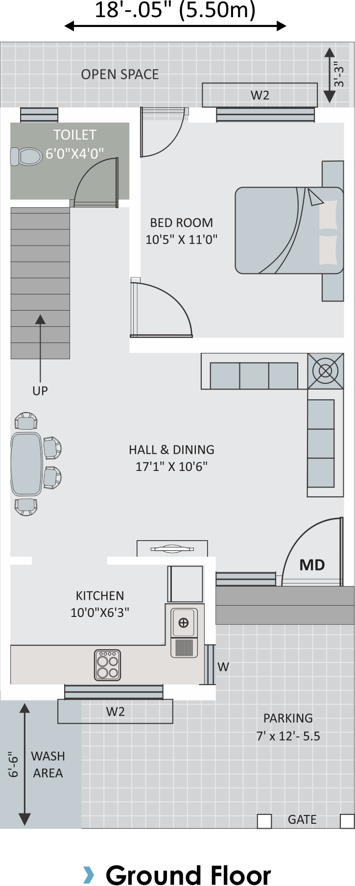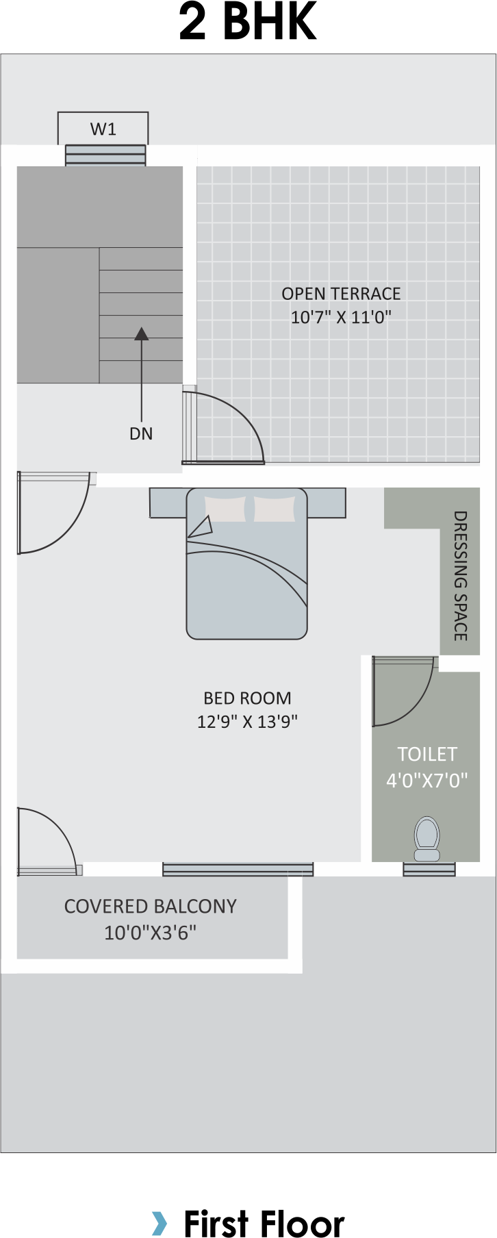 Vitrified Tiles (2 x 2) in all Rooms, Glaze Tiles in all Bathrooms & Toilets.